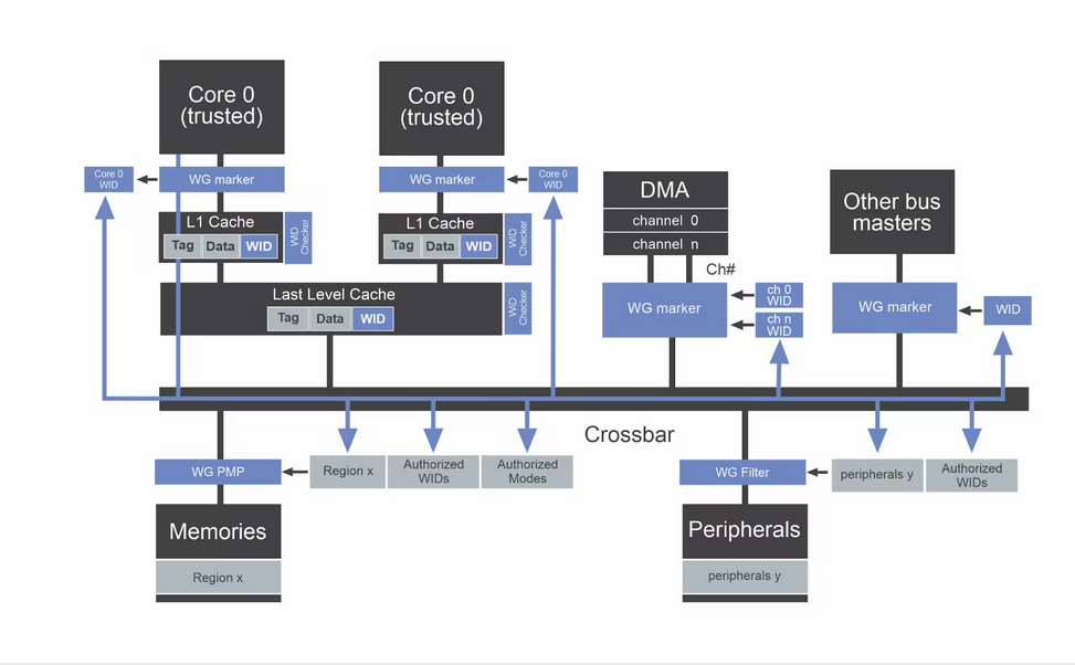 Fournie dans le cadre de la plate-forme ouverte sécurisée SiFive Shield, la solution d’isolation des logiciels assistée par le matériel SiFive WorldGuard offre une protection contre l'accès non autorisé à la mémoire ou aux périphériques par des applications logicielles ou d'autres initiateurs comme le procédé DMA (Direct Memory Access). Elle permet la création de domaines isolés, appelés "mondes", afin d’assurer une exécution sécurisée du code et la protection des données. L'isolation est obtenue au travers de plusieurs niveaux de privilèges pour chaque monde afin d’offrir un contrôle complet sur la puce-système.