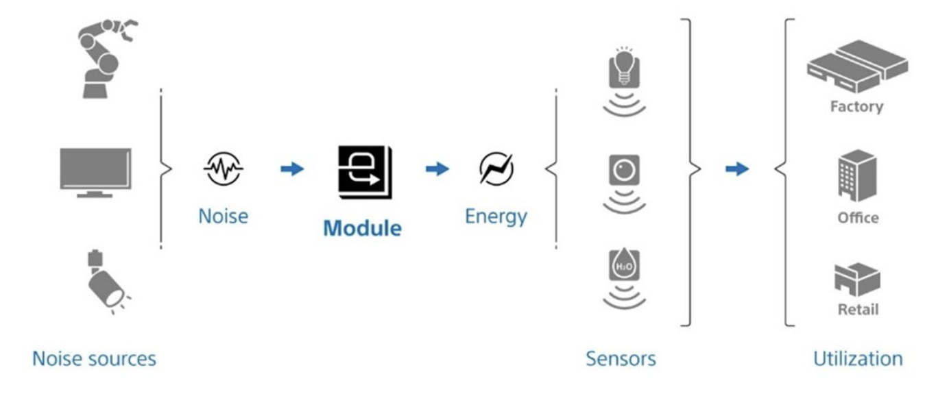 Le japonais Sony Semiconductor Solutions annonce avoir développé un module de récupération d'énergie qui utilise le bruit d'origine électromagnétique avec, selon la société, un niveau d'efficacité élevé. Ainsi cette technologie pourrait par exemple tirer parti du bruit constant d'origine électromagnétique généré par les robots à l'intérieur des usines, par des moniteurs et l'éclairage dans les bureaux, par des moniteurs et téléviseurs dans les magasins et les maisons, etc. afin de fournir une alimentation électrique stable nécessaire au fonctionnement des capteurs IoT à faible consommation d'énergie.