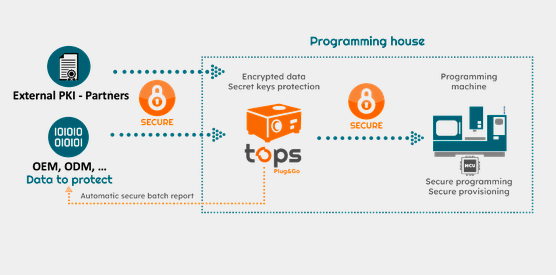 Enfin, les OEM utilisant des systèmes de programmation manuels ou semi-manuels de fournisseurs de silicium, peuvent tirer parti de tops plug&go grâce à un logiciel de production intégré qui automatise et sécurise ces systèmes de programmation manuels internes.