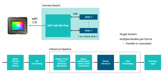 Concrètement, les deux sociétés ont intégré étroitement les capacités de vision artificielle des processeurs d’application i.MX de NXP avec les fonctions d’inférence éco-efficaces du processeur ARA-1 afin de réaliser des analyses de flux vidéo en périphérie de réseau (edge) dans le cadre d'applications complexes sur des marchés comme les magasins de détail intelligents, les smart cities et l’industriel.