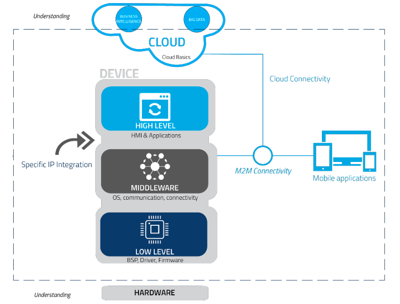 Au-delà, ces évolutions obligent aussi des sociétés comme Witekio, dotées d'une forte expertise technologique dans les systèmes d'exploitation, les firmwares, les BSP, etc. « à devenir des experts en pilotage d'intégration globale des diverses couches logicielles des systèmes connectés dans les domaines industriel, médical ou automobile, complète Yannick Chammings. Avec en sus la nécessité de réfléchir avec les utilisateurs sur la valeur des données générées. » Witekio qui emploie environ une centaine de collaborateurs (60% en Europe, 35% aux Etats-Unis et 5% en Asie) compte avec ce positionnement ambitieux multiplier par deux ou trois ses effectifs dans les cinq à dix ans qui viennent, avec une croissance forte aux Etats-Unis qui devraient représenter à l'horizon 2020 45% des effectifs de la société.