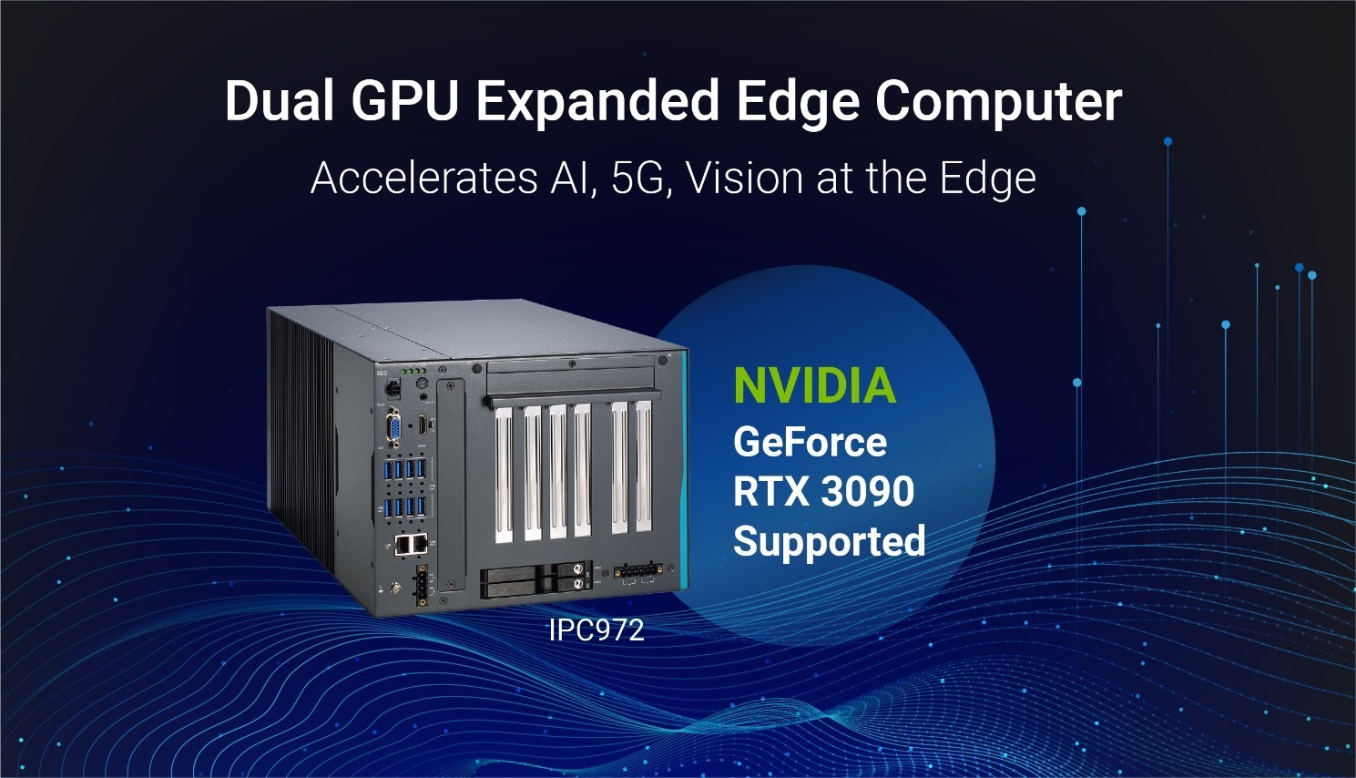 - Calculateur edge à double extension GPU pour un traitement accéléré de l'IAConçu par Axiomtek, l'IPC972 est un ordinateur de traitement de données en périphérie de réseau (edge) fondé sur un processeur Intel Xeon ou Core i7/i5/i3 de 10e génération (nom de code Comet Lake S) associé au chipset Intel W480E. Avec la possibilité de prendre en charge deux cartes GPU de Nvidia GeForce RTX 3090 pour faciliter le traitement d'image, le contrôle en temps réel, l'analyse de données, l'apprentissage profond (deep learning), l'acquisition de données rapide… - Emplacement M.2 Key-B 3042/3050 avec emplacement pour une carte SIM pour une connexion sans fil 5G - Emplacement M.2 Key-E 2234 pour les modules Wi-Fi/Bluetooth - Emplacement pour minicarte PCIe pleine taille avec une carte SIM pour modules Wi-Fi/Bluetooth/LTE - Large plage de température de fonctionnement de -10°C à +60°C - Entrée d'alimentation de 24 VDC avec fonction de retard à la mise sous tension, protection contre les surtensions, les surintensités et les inversions de tension