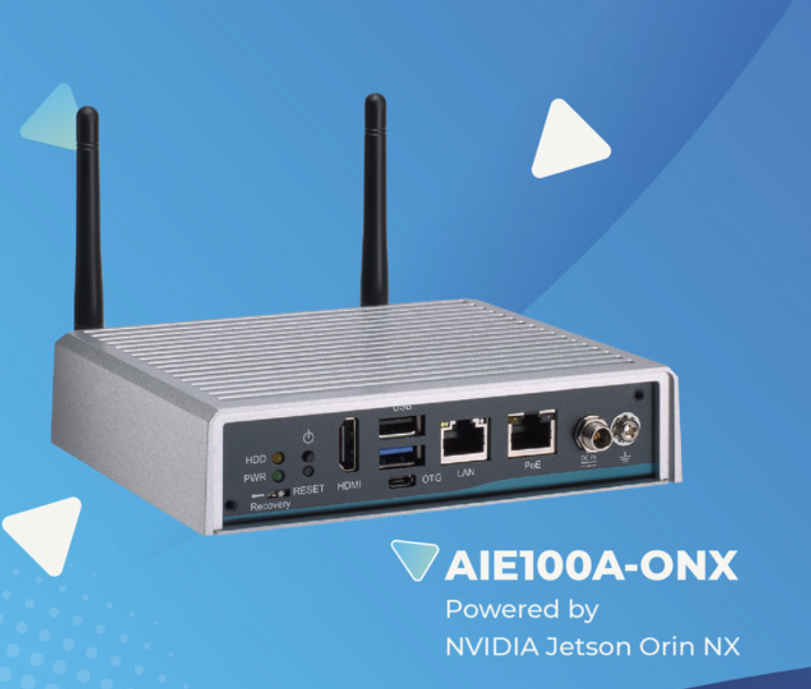 - Calculateur embarqué fondé sur un module Jetson Orin de NvidiaL’AIE100A-ONX d’Axiomtek est un calculateur embarqué tout-en-un architecturé autour du module Jetson Orin NX de Nvidia qui intègre un processeur Arm Cortex-A78AE à 8 cœurs ou 6 cœurs offrant jusqu'à 100 Tops de performances pour la conduite d’algorithmes d’intelligence artificielle, ainsi qu’un processeur graphique (GPU) à architecture Ampère à 1 024 cœurs Cuda avec 32 cœurs Tensor. L'AIE100A-ONX peut êtyre connecté à une caméra IP prête à être déployée avec une ligne d’alimentation et une ligne de transmission vidéo grâce à un lien PoE (Power Over Ethernet). Cette solution est adaptée aux applications des villes intelligentes, à la robotique et aux machines autonomes. - Solutions d'IA développées pour la plate-forme Nvidia Jetson déployables sur les modules Orin Nano, Orin NX et AGX Orin en fonction de l'évolution des besoins - Port USB 3.2 Gen2, port USB 2.0 et port Micro-USB - Interface Gbit Ethernet, Gbit Ethernet PoE (Power over Ethernet) et un lien HDMI 2.0 avec prise en charge des vidéos 4K - Prise en charge du kit logiciel JetPack 5.1 de Nvidia pour faciliter le développement d'applications d'apprentissage profond (deep learning) - Plage de températures de fonctionnement de -30°C à +50°C, résistance aux vibrations jusqu'à 3 Grms et en option un kit de couverture étanche IP42 conçu pour renforcer la protection dans des environnements semi-extérieurs
