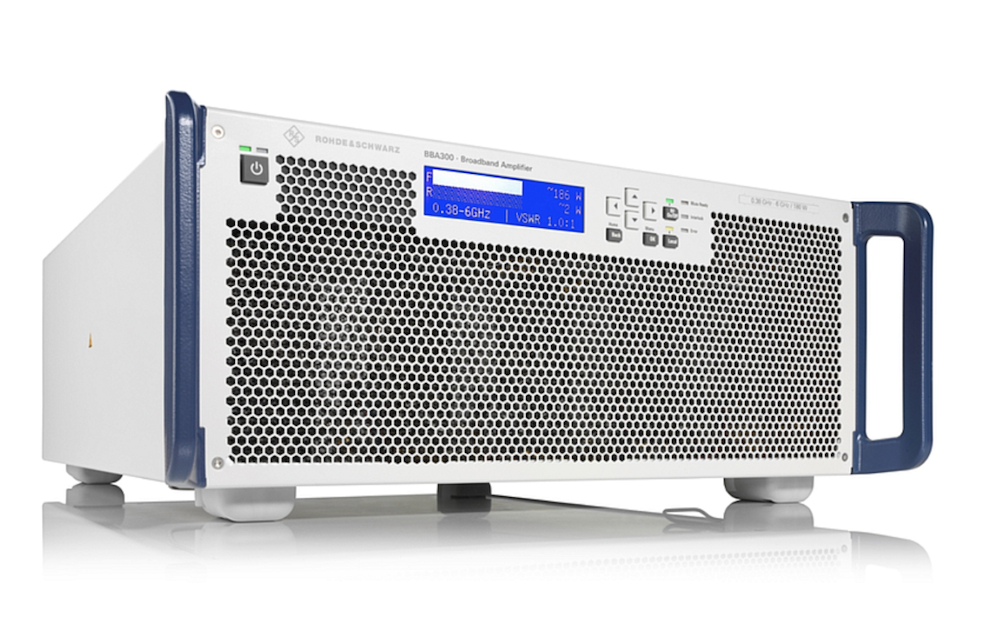 - Gamme d’amplificateurs RF jusqu’à 6 GHz et 250 WConçus pour les environnements de test, les amplificateurs BBA300 de Rohde & Schwarz offrent une bande de fréquence de 380 MHz à 6 GHz et une puissance de sortie allant jusqu’à 250 W. Ces amplificateurs sont pensés pour fournir des signaux de test stables et précis pour le test d’équipements. Ils sont notamment utilisés pour les tests de compatibilité électromagnétique ainsi que pour les tests de composants au cours du développement et en production. - Prise en charge de modes de modulation d’amplitude, de fréquence, de phase, d’impulsion et OFDM complexes - Deux modèles disponibles dans les classes de puissance P1dB de 15 W, 25 W, 50 W, 90 W et 180 W - Appareils réglables par logiciel jusqu’à une puissance de saturation de 250 W - Options logicielles pour optimiser les caractéristiques de transmission, comme le déplacement du point de fonctionnement des transistors - Option pour optimiser la tolérance à la désadaptation de sortie, ce qui permet de générer plus de puissance RF dans des conditions de bonne adaptation.