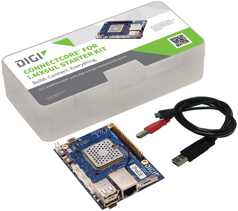 - Kit de démarrage pour systèmes connectés embarquant le CPU i.MX6ULSous la référence ConnectCore 6UL Starter Kit, Digi International propose une plate-forme complète, basée sur le processeur d’application NXP i.MX 6UltraLite, pour le développement rapide de systèmes connectés sécurisés. ... - Système-sur-Module avec le CPU NXP i.MX6UL, 256 Mo de flash Nand et 256 Mo de DRam DDR3 - Facteur de forme aux dimensions 87 x 63 mm - Connectivité 10/100 Mbit Ethernet, Wi-Fi, Bluetooth (4.2 et LE) - Gamme de température industrielle de -40°C à +85°C - BSP (Board Support Package) Linux et multiples fonctions de sécurité