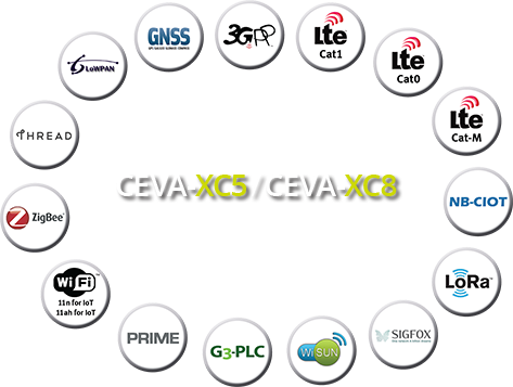 - Processeurs DSP de communication compacts et très efficacesCeva présente deux coeurs de processeurs DSP vectoriels, référencés Ceva-XC5 et Ceva-XC8, qui se distinguent par leur très petite taille pour une excellente efficacité en énergie, performances et coût. ... - Solution de connectivité multimode - Pour les applications IoT et M2M - Supportent tous les protocoles cellulaires tels LTE MTC Cat-1, Cat-0 et Cat-M - Supportent aussi Wi-Fi 802.11n, CPL, 802.15.4g, ZigBee/Thread, GNSS, NB-IoT et Wi-Fi 802.11ah - Par rapport aux versions précédentes, réduction de 20% en taille mémoire, de 40% en encombrement et de 70% en consommation en mode dynamique