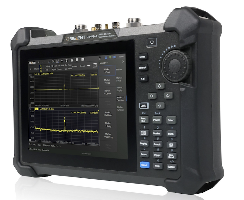 Les instruments portables SHN900A de Siglent (distribué par Distrame) regroupent des fonctions d’analyseur de réseau vectoriel, d’analyseur de spectre, de testeur de câbles et d’antennes, avec en sus une fonction d’analyse dans le domaine temporel. Cet appareil polyvalent est destiné aux applications de maintenance et d’entretien de systèmes de communication sur le terrain, de maintenance de lignes de production et d’essais de systèmes électroniques automobiles in situ. Ces instruments dotés d’un écran couleur de 8,4 pouces se déclinent en trois modèles, dotés chacun de deux ports pour une gamme de fréquence analogique du signal d’entrée de 30 kHz à 26,5 GHz (modèles SHN914A, SHN920A et SHN926A).