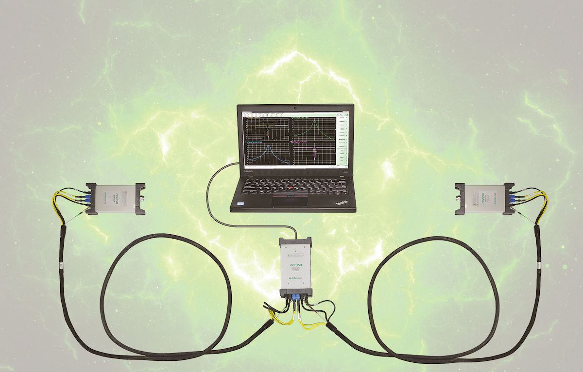 - Module de contrôle MN25132A qui simplifie l'installation agissant comme une jonction pour les câbles, alimentant les deux VNA MS46131A et les reliant à un ordinateur portable