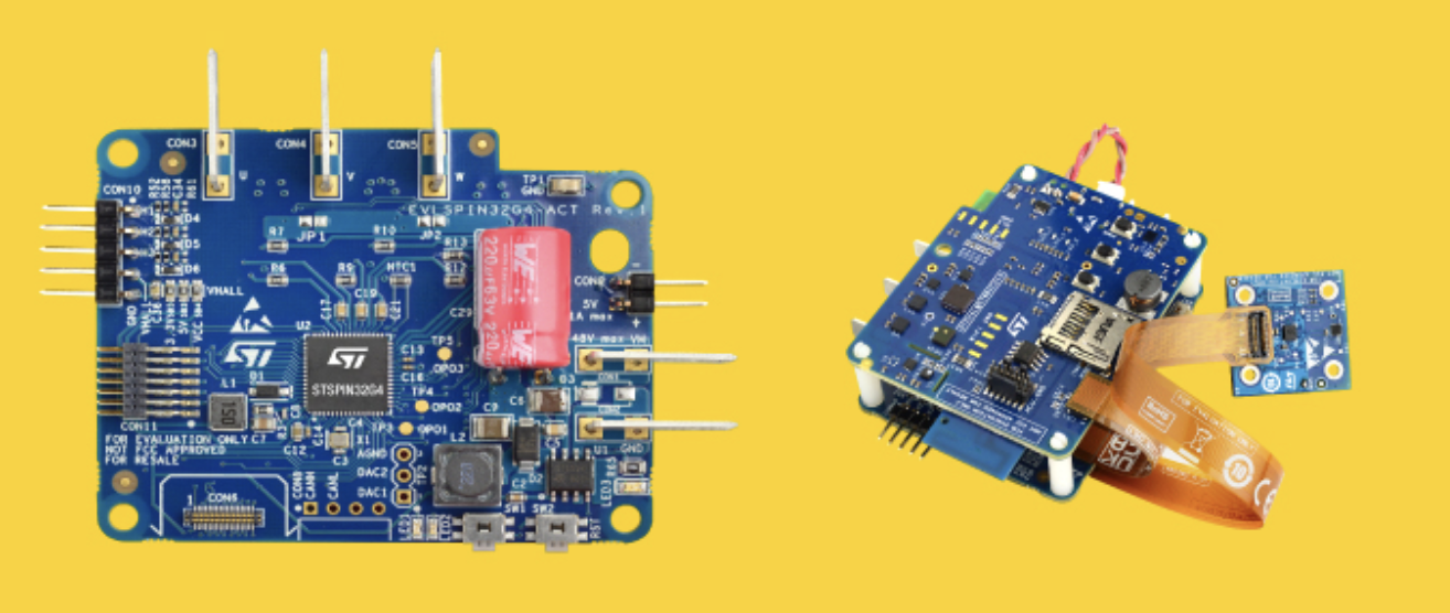 Combinant le contrôle moteur, la détection et l'intelligence artificielle, la conception de référence d'entraînement moteur EVLSPIN32G4-ACT Edge-AI de STMicroelectronics est fondée sur le pilote de moteur triphasé intelligent STSPIN32G4 de la société. L’objectif de cette solution, qui se présente sous la forme d’une carte, est de faciliter la conception d'actionneurs intelligents. Celle-ci se connecte directement au nœud de capteurs industriels sans fil de ST, STWIN.box (STEVAL-STWINBX1), pour accélérer le développement de systèmes intégrant du contrôle moteur, de l’analyse en temps réel des données environnementales et de la connectivité IoT. La solution peut piloter des moteurs jusqu'à 250 W, fonctionnant à partir d'une alimentation 12 V, 24 V, 36 V ou 48 V.