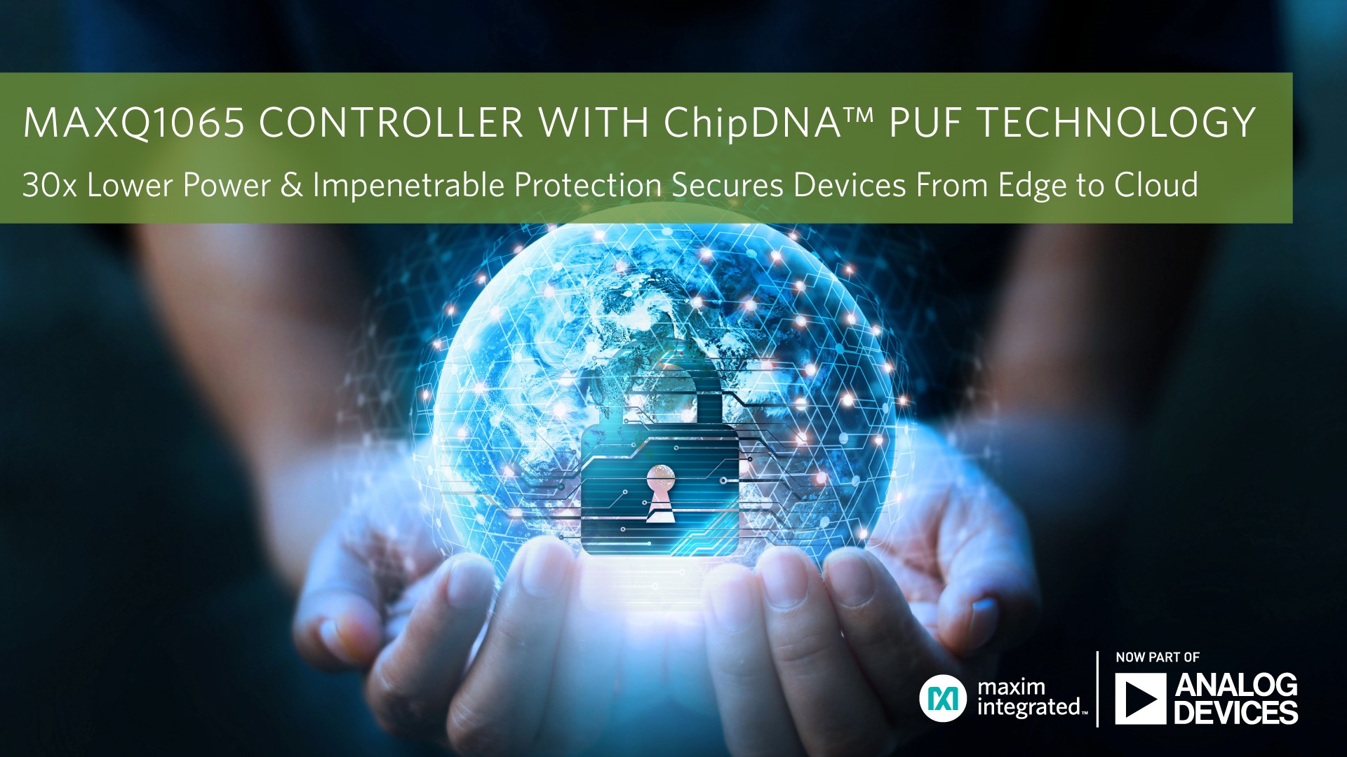 Le circuit ChipDNA d'Analog Devices (conçu initialement par Maxim Integrated désormais dans le giron d'Analog Devices) est un coprocesseur de sécurité qui présente une consommation très faible (100 nA quand l’alimentation principale est coupée). Il fournit une protection de classe industrielle aux appareils alimentés sur batterie et utilisés dans les environnements les plus difficiles et les plus critiques en matière de sécurité. Le contrôleur cryptographique à ultrabasse consommation MAXQ1065 est doté de la technologie propriétaire de fonction physique inclonable (PUF, Physical Unclonable Function) qui assure la protection pour les nœuds de l'Internet des objets (IoT), depuis la périphérie de réseau jusqu’au cloud, contre les tentatives d’attaque invasive....