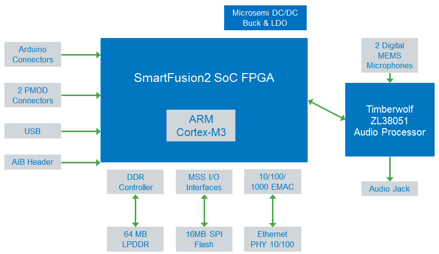 - Embarque le SoC FPGA SmartFusion2 de Microchip