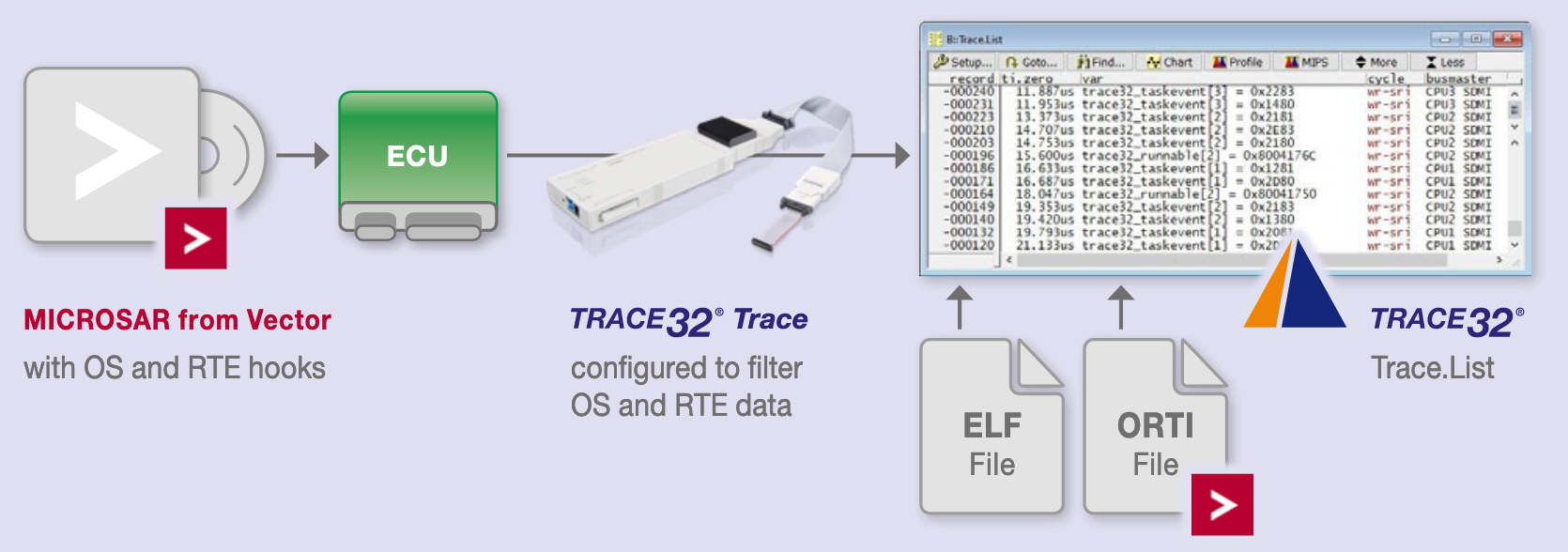 - Mise à profit des hook de traçage de Microsar qui déclenchent des fonctionnalités de trace matérielle