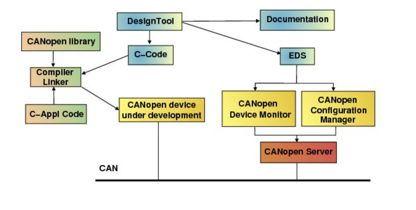 - Outil de conception associé (Industrial Communication Creator) pour générer un dictionnaire d'objets et une fonction d'initialisation en code C pour configurer la bibliothèque CANopen et les packages de pilotes CANopen, et pour créer une fiche technique et la documentation du projet