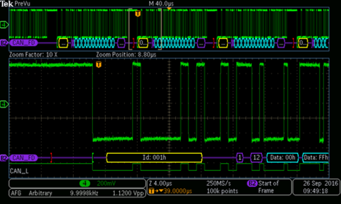 - Déclenchement flexible sur les paquets de données et conditions d’arbitrage avec support ISO et non ISO